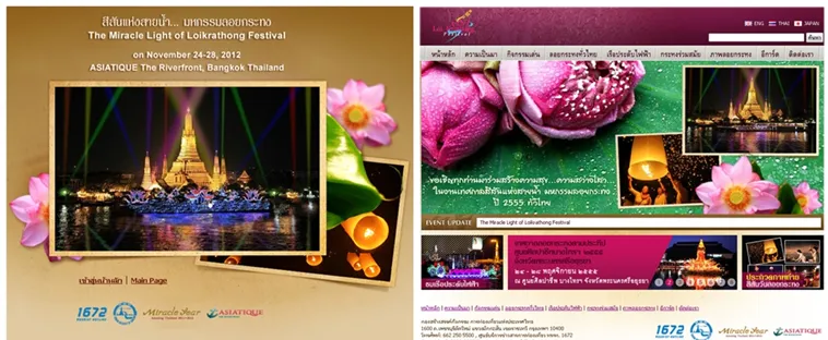 ซึ่งในการจัดทำเว็บไซต์ทางบริษัทได้ดำเนินการเซ็ตถ่ายภาพประกอบงานลอยกระทง ซึ่งภายหลังหน่วยงานต่างๆ ได้นำไปใช้อย่างแพร่หลาย